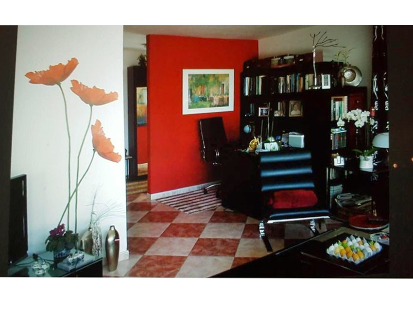 Имеет 3 спальни, 2 ванные комнаты, огромную гостиную с видом на сад и бассейн, отдельную кухню и гараж на две машины.